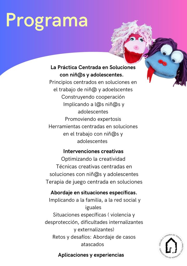 Esta 3ª edición del Training en Práctica Centrada en Soluciones con Niñ@s y Adolescentes es mucho más que un curso: es una experiencia transformadora que revolucionará tu manera de trabajar y de entender a la infancia y la adolescencia. Imagina sumarte a un grupo de profesionales que comparten tu pasión por ayudar, que creen en el poder de las soluciones y las fortalezas, y que están dispuestos a seguir aprendiendo juntos. Cada sesión te brindará no solo técnicas innovadoras, sino también un espacio de apoyo mutuo, de crecimiento y de inspiración constante.