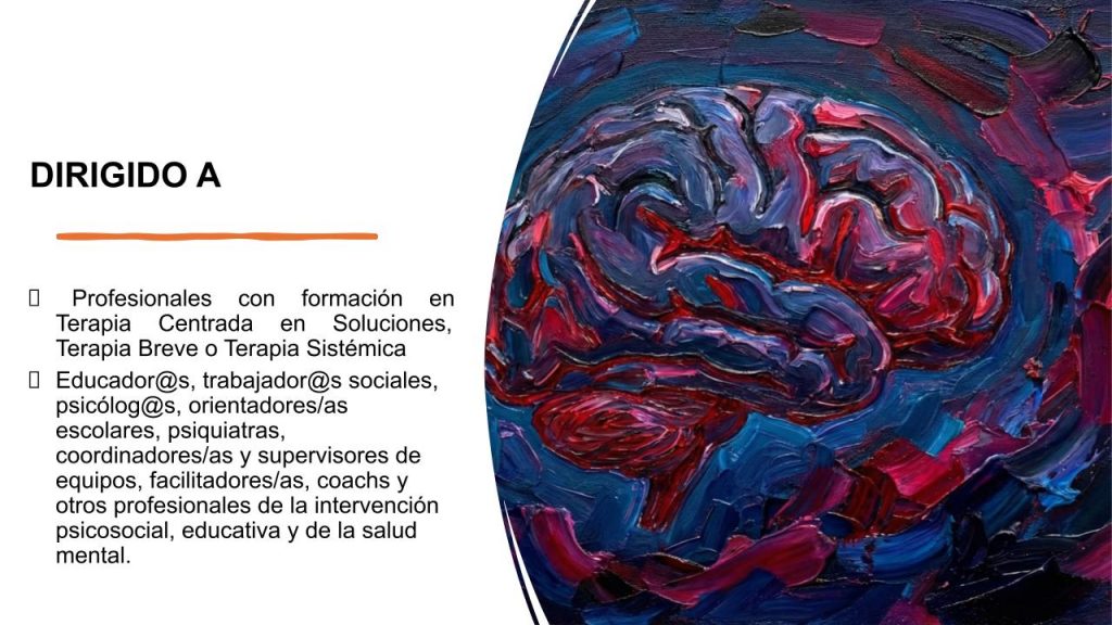 El training está dirigido a profesionales con formación o familiaridad con la Terapia Breve, la Terapia Sistémica o la Práctica Orientada en Soluciones, que trabajan en contextos de ayuda, tales como: