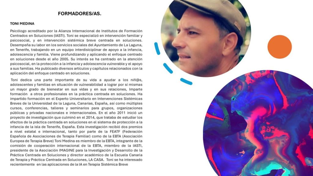 Con este objetivo nace la II Edición del Training Avanzado en Inteligencia Artificial aplicada a la Práctica Orientada en Soluciones, una formación pionera en España, avalada por la IASTI (International Alliance of Solution Focused Training Institutes) y por la CASA (Escuela Canaria de Terapia y Práctica Centrada en Soluciones)